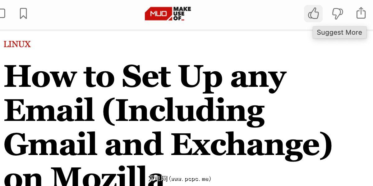 使用Suggest More和Suggest Less按钮可以让应用了解您对新闻的品味。这些选项显示在“文件”、“按住 Control 单击”和“共享”菜单中,但使用该功能的最简单方法是单击故事上方的“竖起大拇指”或“竖起大拇指”图标。
