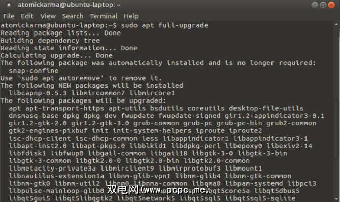 sudo apt full-upgrade使用此命令,不仅将升级软件包,而且在升级过程中必须删除的所有旧软件包也将被丢弃。标准的 apt upgrade 命令无法执行此操作。