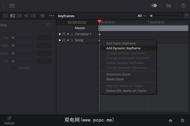 稍后在关键帧时间线中添加第二个动态关键帧,修改第二轮调整大小并使您的缩放效果达到戏剧性的结论。