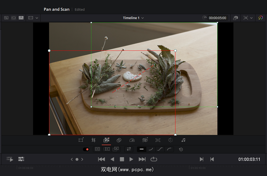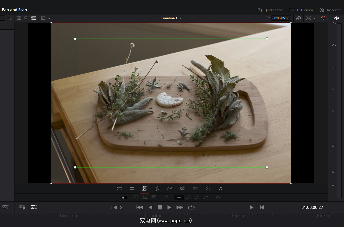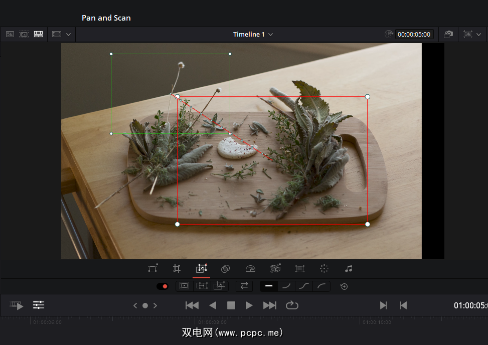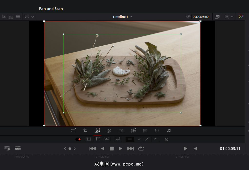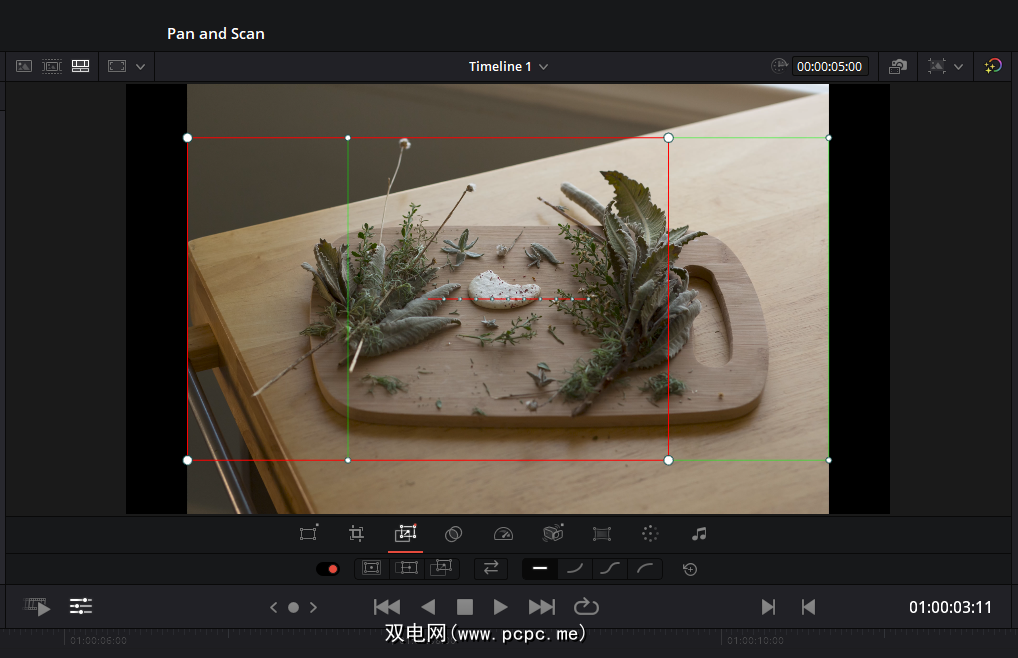首先,确保动态缩放是您选择的工具栏按钮。您应该会在视口中看到未裁剪图像顶部的绿色框;这是您将引导以实现平移和扫描效果的窗口之一。导航到时间线中剪辑的第一帧。