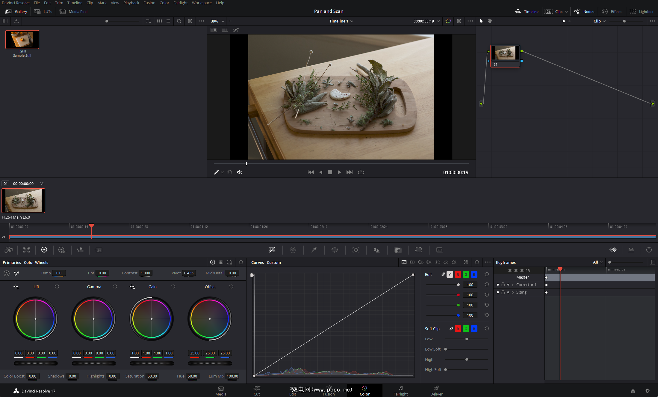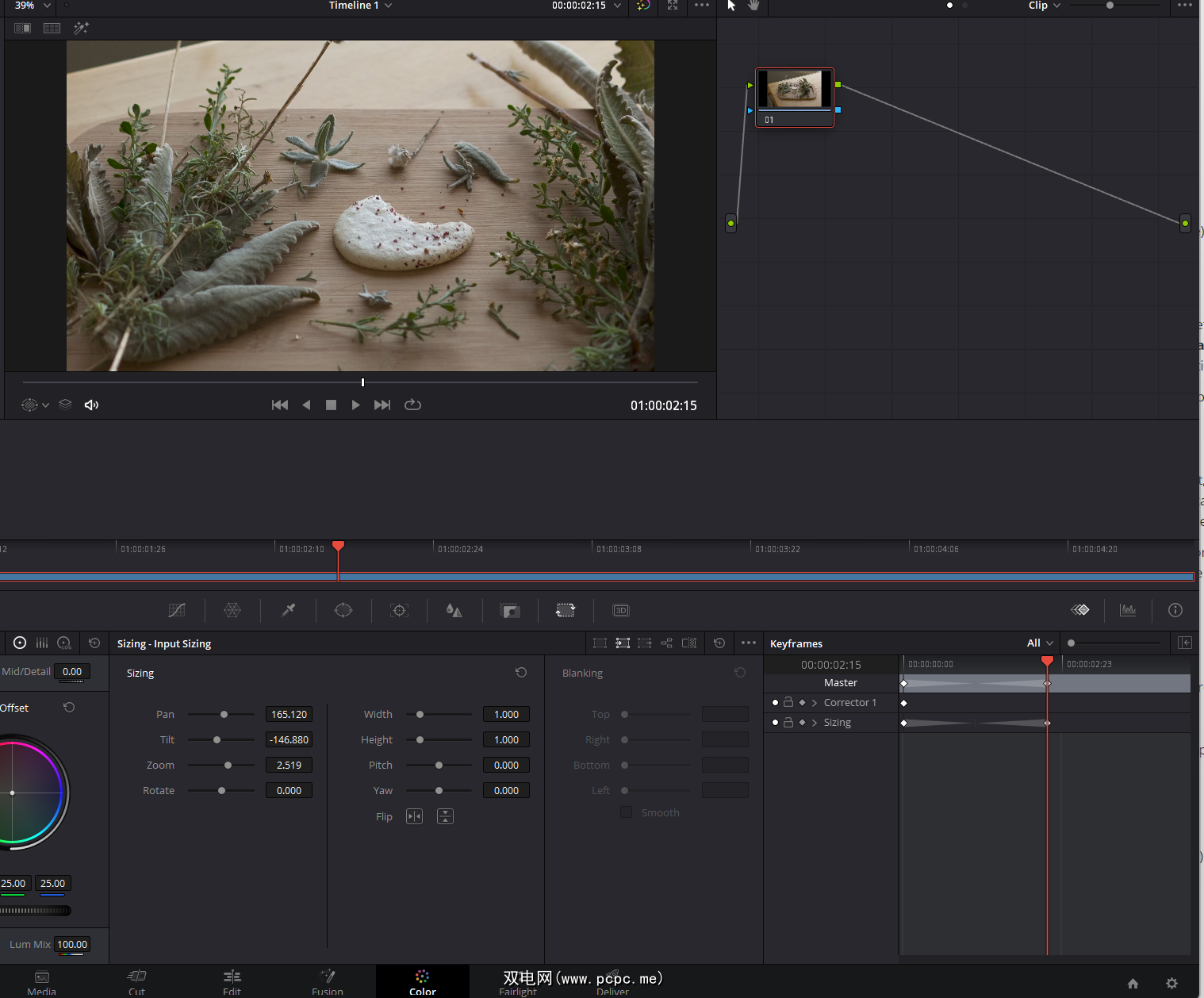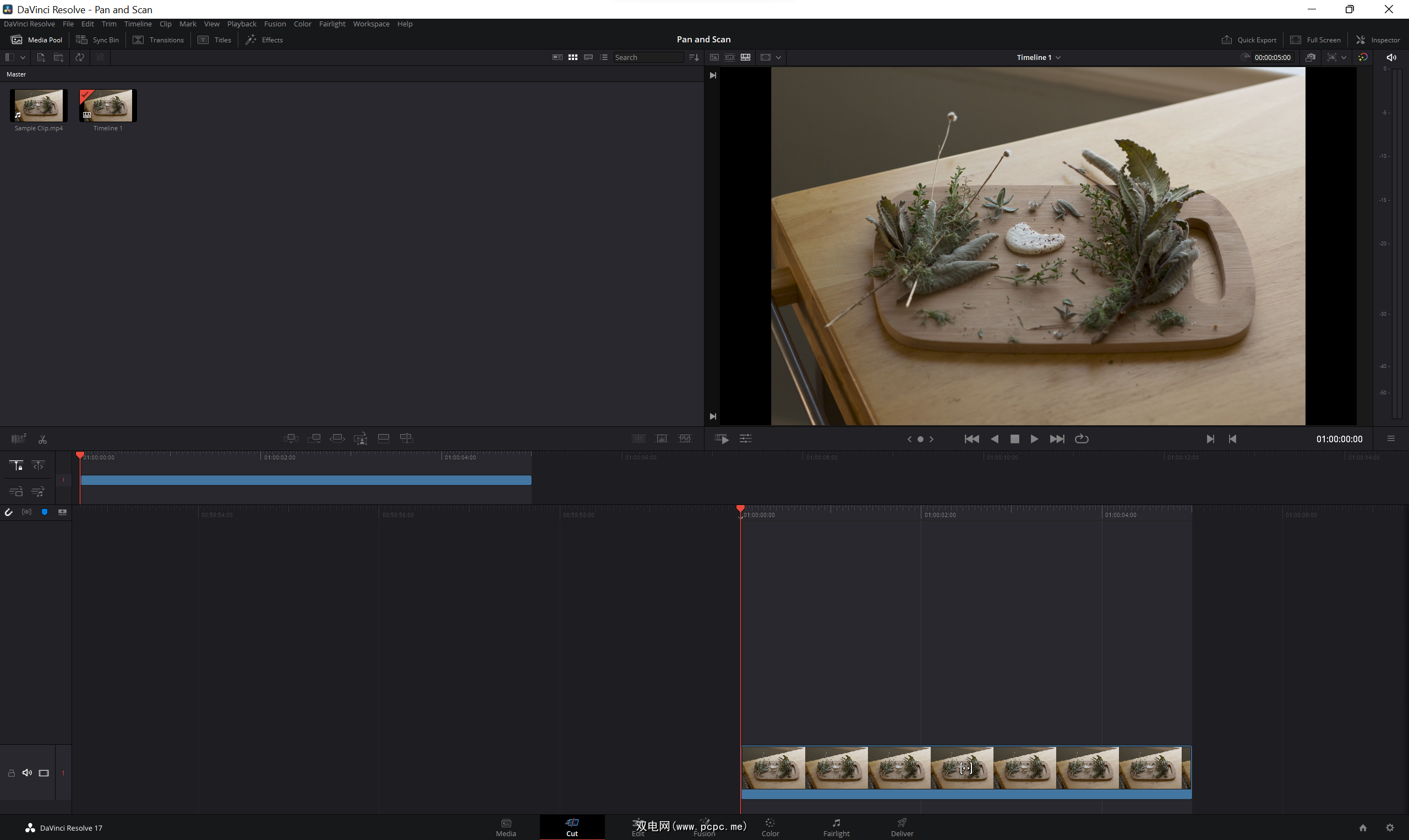 首先,单击“媒体”选项卡并导入剪辑。将它添加到“剪切”工作区中的主时间线,就在它的底部旁边。对于第一种方法,我们将在家中的Color工作区中进行平移和扫描。