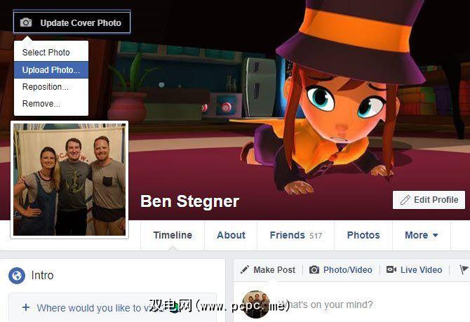 您在时间轴顶部的封面照片并不像个人资料照片那么重要,但仍然装饰页面的简单方法。将鼠标悬停在空白照片左上角的相机图标上,然后选择更新封面照片。由于您在Facebook上还没有图片,请选择上传照片…并从计算机中添加新图片。