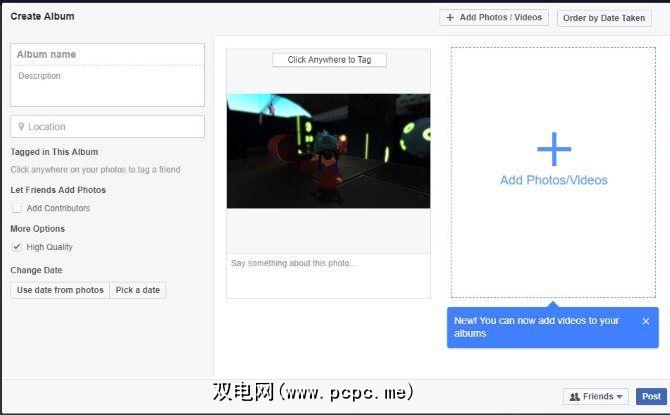 如果要添加多张照片,请考虑改为点击状态框顶部的照片/视频相册。这样一来,您就可以为相册命名,让好友贡献,订购照片等等—如果他们来自同一事件,那就太好了。确保您的照片隐私设置井井有条。