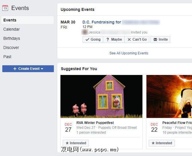 Facebook活动可让您创建和浏览您附近的活动。主页上显示了您可能感兴趣的建议事件以及朋友邀请您进行的事件。