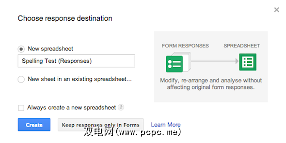 您将需要单击“选择响应目标",并告诉表单将响应放入电子表格中。然后单击“查看响应"以查看电子表格。这就是乐趣的开始。