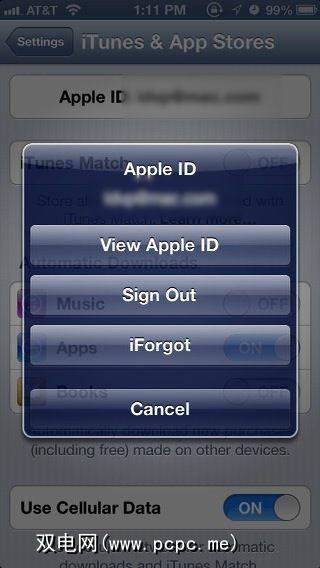 如果您有从iTunes App Store购买的应用程序或您要与家人共享的Mac App Store,也可以这样做。在您要共享应用程序的iOS设备上,启动设置应用程序,然后点击“ iTunes&App Stores "。从那里点击Apple ID,网址为顶端。在弹出窗口中,选择退出,,然后使用您的帐户信息重新登录。