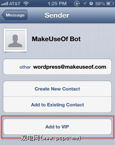 您可以在VIP邮件列表中添加特殊的人。 ,该人的所有电子邮件将显示在一个文件夹中。要将联系人添加到iPhone的VIP列表中,请选择该人的电子邮件;然后在发件人地址字段中点击其姓名,然后从那里点击“ 添加到VIP 。"