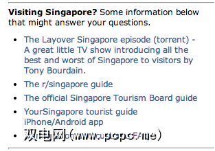 例如:我最近在旅行时发现了新加坡subreddit-并了解了许多要做的事情那个亚洲城市国家。这个线程特别棒。