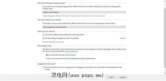 在此菜单上,滚动到标签为在可用时使用桌面语言栏的选项,并启用其旁边的复选框(或者,如果要关闭语言栏,请取消选中它)。点击保存,一切都准备就绪。