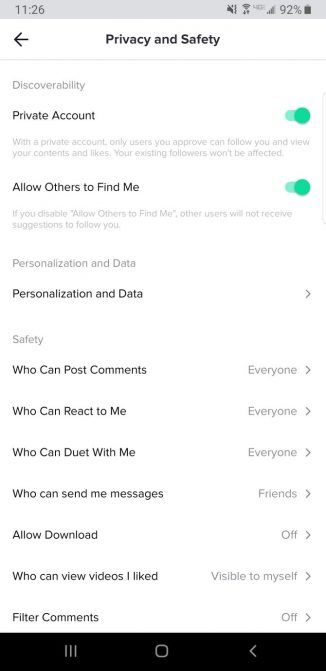 在个人资料中,点击屏幕右上角的三个点。转到隐私和安全,然后点击私人帐户按钮以启用此设置。当您将帐户设为私人帐户时,未经您的同意,其他用户将无法关注您。从这里,您还可以调整与评论,反应,消息传递等有关的其他隐私设置。