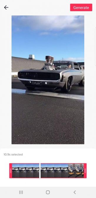 选择该选项后,TikTok会将您定向到屏幕上以编辑长度您的GIF。完成后,选择生成以创建GIF。然后,您可以在各种社交媒体平台上甚至通过短信共享它。