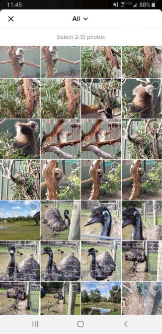 这会将您带到手机的图库,您可以在其中选择要播放的视频要上传。要上传多个视频,请选择多个。然后,您可以继续编辑视频的长度,以及添加文本和过滤器。