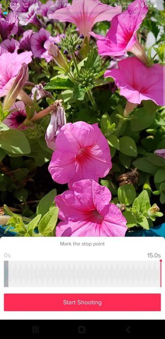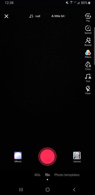 选择屏幕底部的加号以开始制作视频。但是,不要按住红色的大按钮,而是单击屏幕右侧的计时器。这使您可以选择视频的停止时间。一旦使用滑块选择时间,TikTok将在开始录制之前显示倒数三秒。