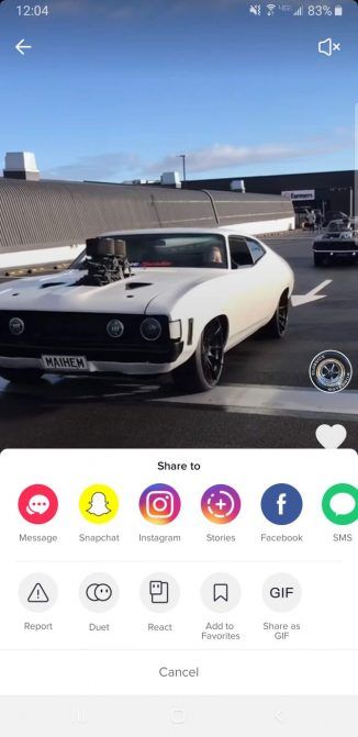 找到喜欢的视频后,为什么不将其转换为GIF?单击所需的视频,然后选择屏幕右侧的箭头按钮。您会看到一系列共享选项,以及显示共享为GIF 的选项。