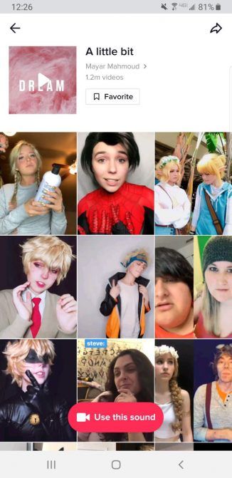 TikTok将显示该歌曲的名称,以及使用它的其他用户的视频。要将其合并到视频中,请选择使用此声音以开始录制。