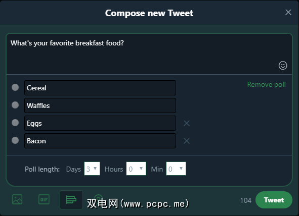 Twitter民意测验让您提出问题,并在两个到四个选项之间进行选择。使用轮询时间选项,您可以允许轮询运行至少5分钟到最多7天。这是一种有趣的方式,可以非正式地查看您的关注者的想法并进行对话。