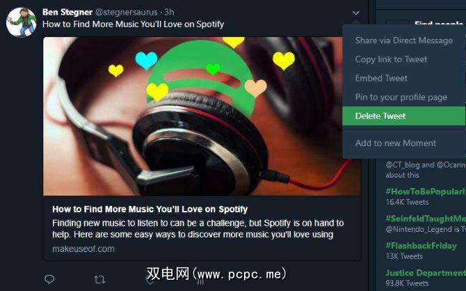 Twitter不允许您在发送推文后对其进行编辑。但是,如果您改变主意,仍然可以删除该推文。导航至您的个人资料,找到要删除的推文,然后单击其右上角的下拉箭头。选择删除推文并确认将其删除。