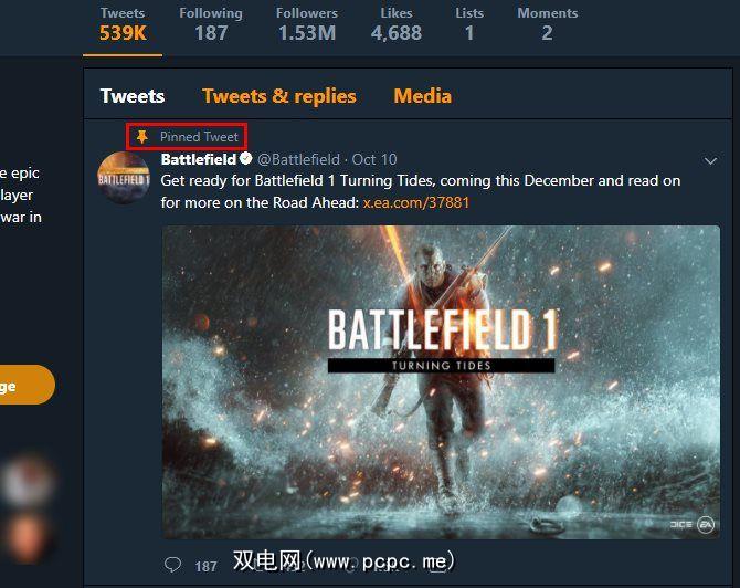 Twitter可让您将一条推文固定到个人资料页面的顶部。这样一来,访问者就可以立即看到您喜欢的推文。您可能希望在此处添加有关您自己的信息,发布的特别受欢迎的推文或其他类似信息。要固定一条推文,请单击您自己的一条推文上的下拉箭头,然后选择固定到您的个人资料页面。