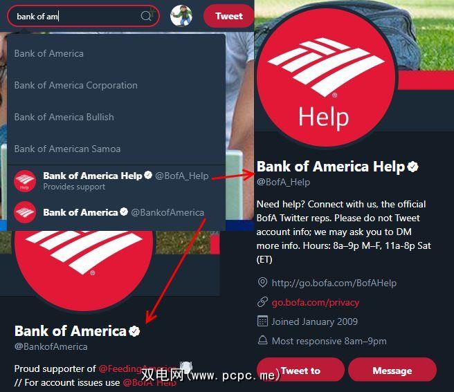 您不应该在非支持帐户中发推文寻求帮助。例如,如果您在此处查看美国银行的页面,它会要求您使用他们单独的帮助帐户来解决问题。