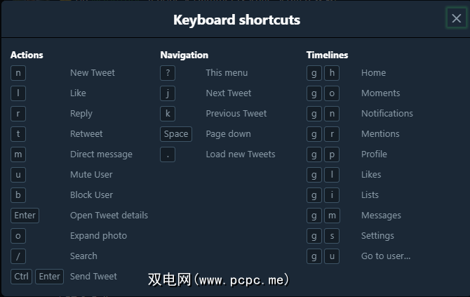 是否想在不使用鼠标的情况下在Twitter上滑动?单击个人资料菜单上的键盘快捷键条目以对其进行审查。