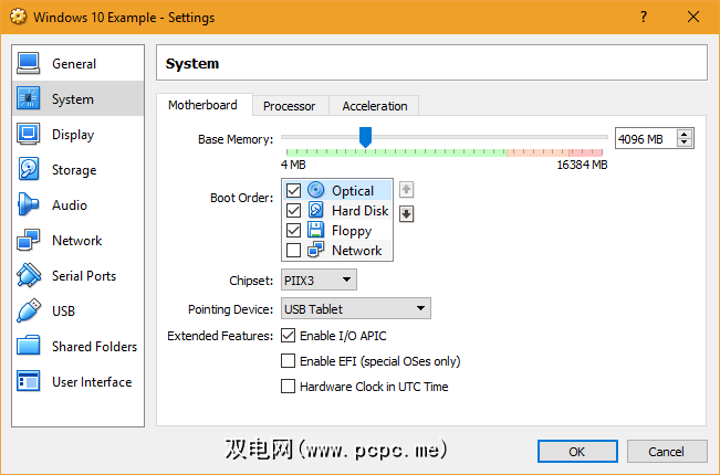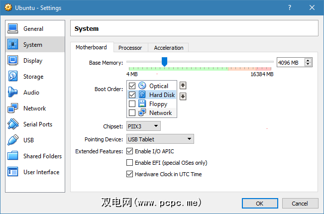 重新创建虚拟机,您接下来需要指定要分配给虚拟OS的RAM数量。 VirtualBox会在此处提供建议,但可能太低了。如果RAM太少,您的VM将遭受性能不佳的困扰。但是给VM过多的RAM,主机PC可能会变得不稳定。