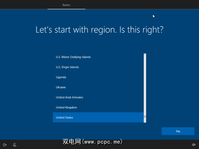 确认您的区域和键盘,然后单击<每个人之后strong>是。如果您没有使用其他键盘布局或语言输入,请点击跳过。