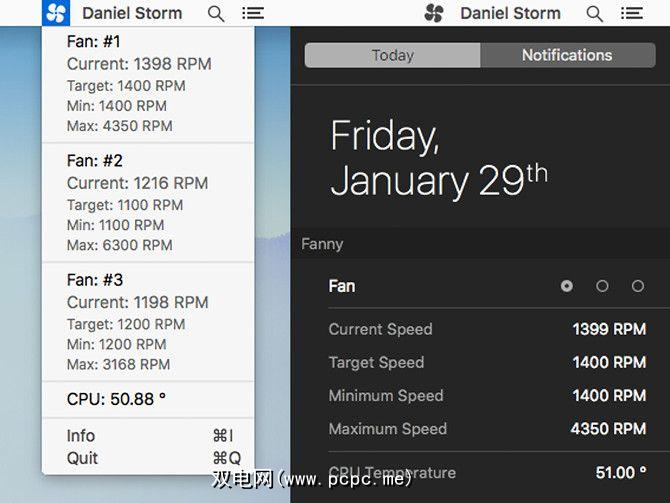 总之,您可以使用任何常规安装方法安装该应用程序,然后将该小部件添加到您的Notification中中央。它还显示在菜单栏中,您可以单击以获取更多信息。它显示您当前的CPU温度和系统中每个风扇的速度。