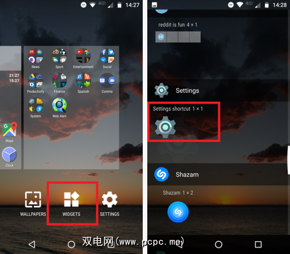 要开始该过程,请解锁Android屏幕并长按主页上的任意位置。将会弹出一个新菜单,其中包含三个选项:“墙纸",“小部件"和“设置"。选择小部件。