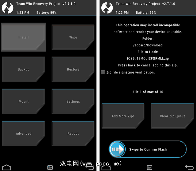 这个方法非常简单,对于拥有根设备的任何人都应该很容易。只需重新启动进入自定义恢复,导航至安装,然后找到可刷新的ZIP,然后沿底部滑动即可对其进行刷新。