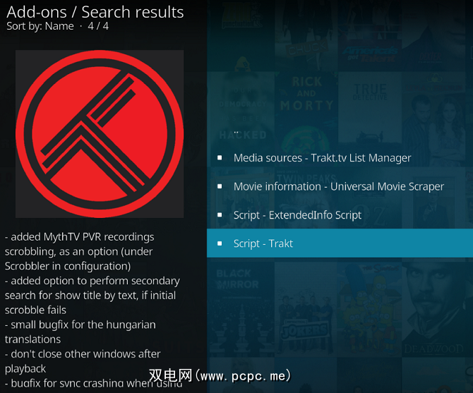 在此阶段,我们还建议您安装Trakt附加组件。该服务类似于LastFM,但适用于电影和电视节目。