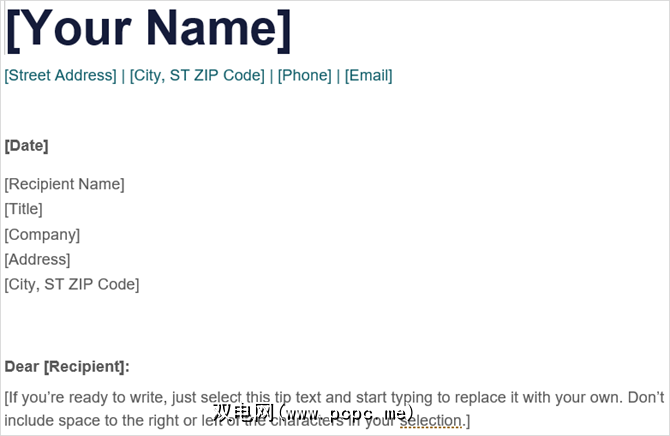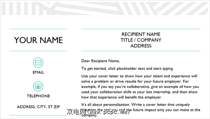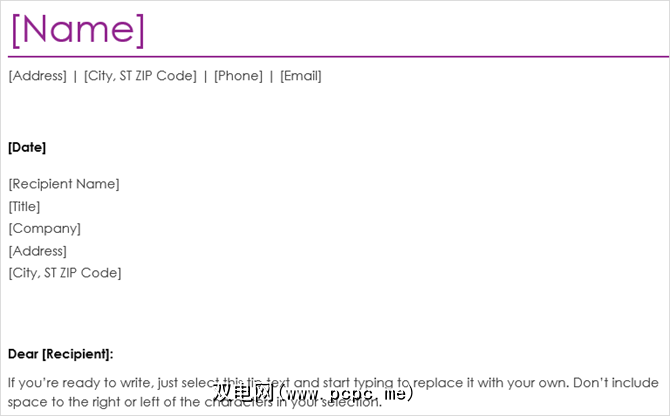 Microsoft Office Online从此简单设计开始便是最好的求职信模板选择之一。只需自己替换掉模板上的文本即可。