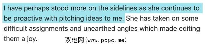 在这种情况下,推荐告诉我们,我们的编辑直接管理了作者。他还说“我在指导中的作用微乎其微",从而以积极的态度加强了这种动力。