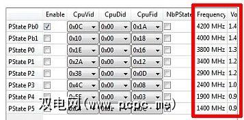 对于AMD芯片组,还存在其他电压操纵方法,例如PSCheck和AMD Overdrive。但是,尽管PSCheck是最好的程序,但它也是最难的。最后,我咬住子弹,从一个陌生人的完整Dropbox上安装了一个zip,这始终是一个糟糕的主意,除非您是我,否则您绝对不要这样做。在这种情况下,您经常会做出错误的决定,并从粗略的来源安装奇怪的文件是您的后顾之忧。通过一个单个步骤施加电压,然后启动压力测试软件。以我的经验,从5到10分钟的测试就足够了。如果计算机崩溃或死机,则在移至下一个乘法器(有时称为P状态,如下图所示)之前,将电压至少回升至少一个步骤。在每个步进点继续重复该过程,降低电压,直到出现不稳定为止。请注意,随着频率增加,电压也会增加。