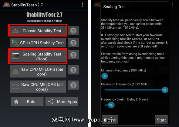 压力测试:据我所知,对于压力测试,一个值得使用的应用程序:StabilityTest [不再可用]。只需选择“ 经典稳定性测试"或“ 定标稳定性测试"。如果仅打算降低最高CPU频率,则经典测试就足够了。但是,如果您打算降低一定范围的值,请进行缩放测试。