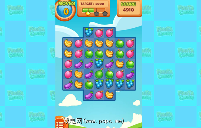 另一个出色的三局游戏,它是一款益智游戏Fruita Crush。拖动以连接三个或更多水果,以将其从板上移除并得分。