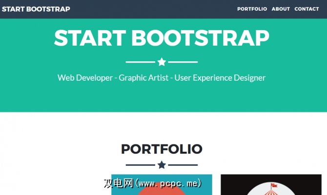 除了一个很小的投资组合部分和一些“关于"文本之外,此页面没有太多内容。但是它的简单就是力量。鲜艳的色彩和扁平化的设计使其脱颖而出,底部的联系方式使潜在客户更容易与他们取得联系。
