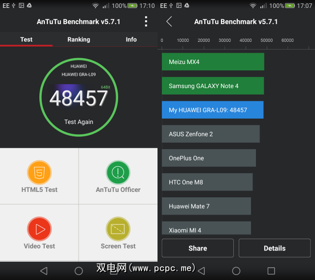 安装了Antutu Benchmark后,Huawei P8会显得很强大。尽管硬件提示了这一点(尤其是64位芯片组),但是它的确令人印象深刻。