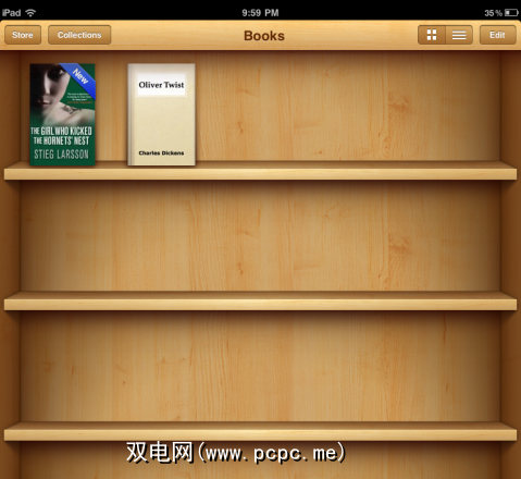 这是iBooks的基本库视图。非常图形和图书馆。您真的觉得您拥有图书。