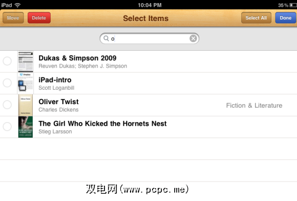 您可以在Amazon上获取更多图书,或下载.mobi文件。上传这些文件的最简单方法是将它们通过电子邮件发送给自己。通过Kindle应用程序,您还可以访问已存档的项目并将其轻松下载到iPad。我找不到在图书馆中搜索书籍的方法。