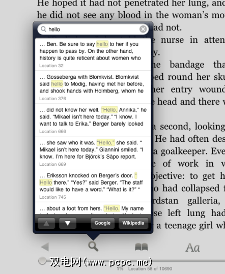 在书中搜索非常容易,快捷,并且您可以获取每个查询的完整上下文。再次点击一个结果将带您到相应的页面。