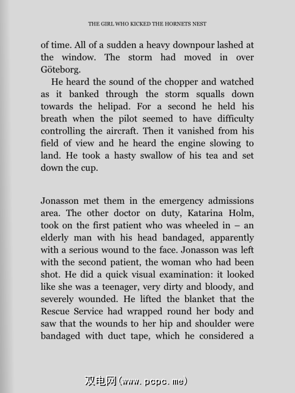 这是默认的阅读体验。简约的。我喜欢它。如您所见,看不到菜单图标(它们会自动消失),也没有“页面"。轻轻点按屏幕即可翻页。如果需要,您甚至可以取消烦人的翻页动画。只是一个带有文字的白色屏幕。
