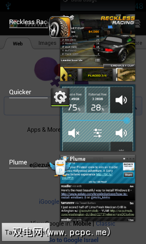 长按主页按钮调出最近使用过的应用程序列表。同样的手势在较旧的Android版本中也可以使用-但是哇,界面上有什么不同。在上方,您可以看到相同的缩略图样式控件,现在用于显示最近使用的应用程序列表。要切换到某个应用,只需点击其缩略图。您还可以通过将其滑动到侧面来立即卸载应用程序。而且,如果您想进行更细粒度的控制,只需轻按一下任务管理器即可。确实是一个了不起的改进。