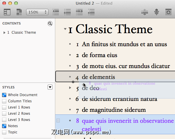对于长时间的写作项目,我使用OmniOutliner for Mac是另一个与Mac OS集成的Mac解决方案印象笔记大纲也可以是有用的头脑风暴工具。