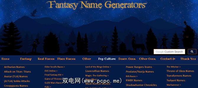 请勿被名称所迷惑;幻想名称生成器提供的功能远远超过幻想类型的名称。该网站提供了人物,地点和物品的名称,以及流行文化,艺术观念和商业口号的创意,是一个值得保留的地方。当您将鼠标移到顶部的类别选择上时,您将立即看到大量的子类别可供选择。