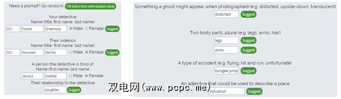 针对特定类型的生成器的妙处在于,您可以收到许多想法来为您提供帮助。也许您需要角色名称,有趣的武器或敌方物种。只需单击该项目旁边的建议按钮,即可随机回答。或单击顶部的按钮以自动填写整个表格以获取大量建议。