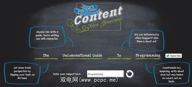 Portent的Content Idea Generator是一个出色的工具,可帮助文章作者和博客作者寻找想法。在主题框中输入单词或短语,然后按Enter键。然后,您将看到一个标题,希望可以为您提供一个想法。如果您不喜欢所示的选项,请单击“刷新"按钮以获取新的内容。