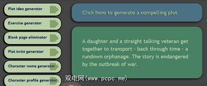 该站点的左侧提供了更多生成器,这是一个奖励。您可以获得有关情节曲折,字符名称,位置和第一行的想法。如果您不需要整个故事的想法,而只是零碎的故事,那么这是一个了不起的资源。