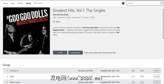 在Windows应用商店中,您会看到购买歌曲或整个专辑的选项。另外,如果您从未使用过Windows 10的Groove音乐(类似于Spotify),则可以选择开始30天免费试用。此后,微软每月的音乐服务费用为9.99美元(8.99英镑)。