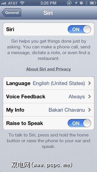 您还可以设置Siri使用哪种语言,以及是否设置想听到来自Siri的语音反馈。如果您不想总是收到Siri的回音,请禁用反馈,但是我不建议您在首次使用它时使用它。但是,如果您想在公共场所使用设备,可以关闭语音反馈,以免引起您的注意。在这种情况下,当您将其与设备的耳机配合使用时,您可以选择设置免提语音反馈。要将Siri与iPhone的耳机配合使用,只需按住耳机的遥控器按钮,直到听到熟悉的Siri声音即可。