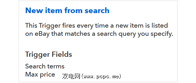 可用的eBay触发器包括搜索字词和最高价格,因此设置您自己的自定义Applet非常简单。